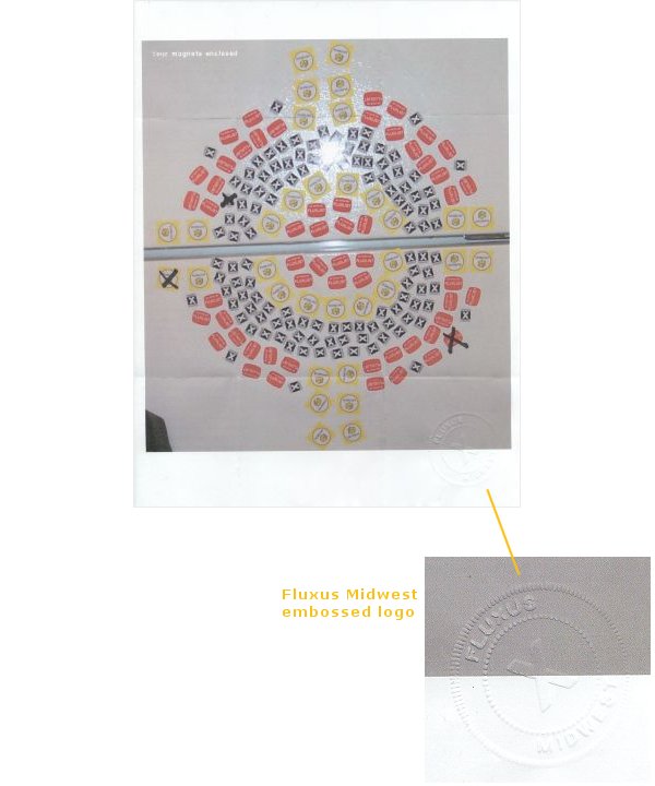 Date: Sun, 18 Feb 2001 20:14:23 -0500 Magnetic photo paper (for inkjet printers) recently discovered at my local Office Depot store. Five 8.5 x 11-inch magnet sheets for 15 USD. So I have been having some fun printing things...like stamps, logos, photos, etc. More fun and games for flux folk. Mail Project: From My Refrigerator to Yours Send me your name/mailing address (OFFLIST, please) and I will mail you the following three small photo magnets: You can view my refrigerator and YOUR new magnets at http://www.fluxus.org/magnets/ Offer expires February 28, 2001 |