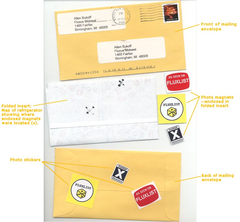 The magnet offer appeared on FLUXLIST, the Fluxus email discussion group, on February 18, 2001. |
