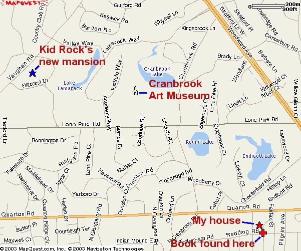 | Larger map showing the location of Cranbrook Art Museum -- perhaps the only bookstore around here that would carry this book. |