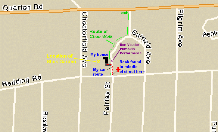 | Map showing location of my house and location of the found book. |